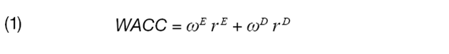 Diesem Kalkül unterliegt die Annahme, dass ein zusätzliches Projekt mit derselben Mischung aus Eigen- und Fremdkapital finanziert wird wie die bisherigen Projekte. Da Projekte mit einer Rentabilität oberhalb der WACC positive Kapitalwerte ergeben und durchgeführt werden, während Projekte mit einer Rentabilität unterhalb der WACC unrealisiert bleiben, sind die WACC ein Maß für die Grenzproduktivität des Kapitals, ausgewertet an der Gleichgewichtsstelle.6 Die Idee, die nicht unmittelbar beobachtbare Grenzproduktivität des Kapitals indirekt über publizierte WACC zu messen, geht zurück auf Knolle;7 weitere Forschung zu diesem Thema stammt von Knolle und Lehmann8 sowie Gehringer und Mayer9. Formal sind die WACC in einer Welt ohne Steuern wie folgt definiert: