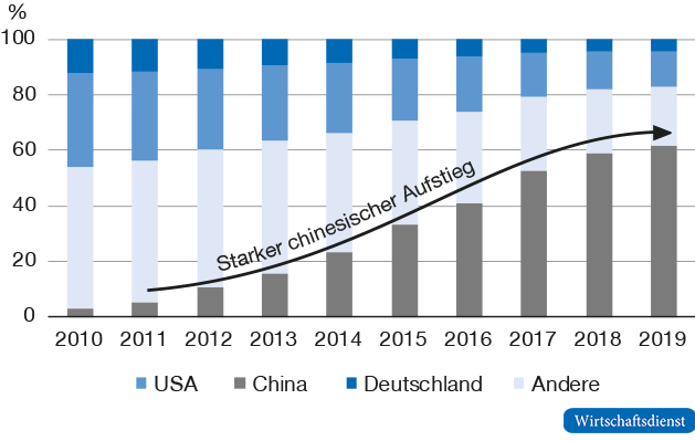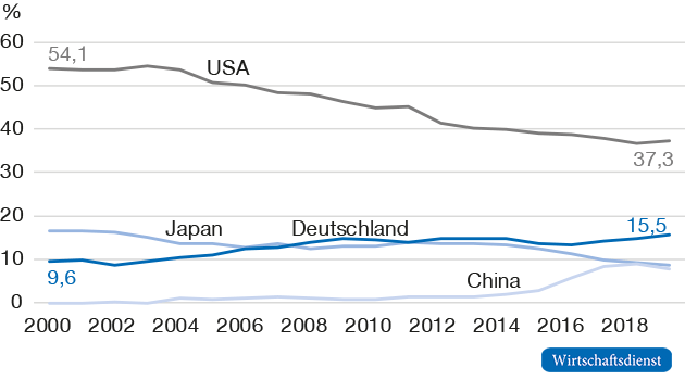 Für Volkswirtschaften ist die eigene Innovationsfähigkeit ein entscheidender Faktor, um in der Wissensgesellschaft erfolgreich sein zu können. Das Innovationspotenzial wird häufig mit der Zahl der Patentanmeldungen gemessen – ohne dabei nach Bedeutung zu differenzieren oder ihre tatsächliche Anwendung zu untersuchen. Unser Ansatz versucht dagegen, ein realitätsnäheres Bild zu zeichnen, indem sie nur die wichtigsten Patente (Weltklassepatente) in den Blick nimmt. Die Ergebnisse zeigen, dass der Vorsprung der USA im Patentbereich bei dieser Betrachtungsweise noch deutlicher zutage tritt, China auch in Sachen Patentqualität stark aufholt und Europa vor allem in digitalen Technologien dringenden Handlungsbedarf hat.