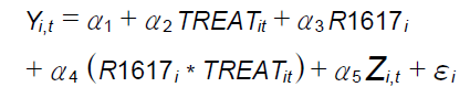 | R1617_TREAT | -0,184** (0,056) | -0,241* (0,096) | -0,139* (0,070) |