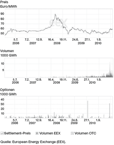 Preise für Strom-Terminkontrakte (Beispiel Phelix Baseload Year Future (Cal-12))